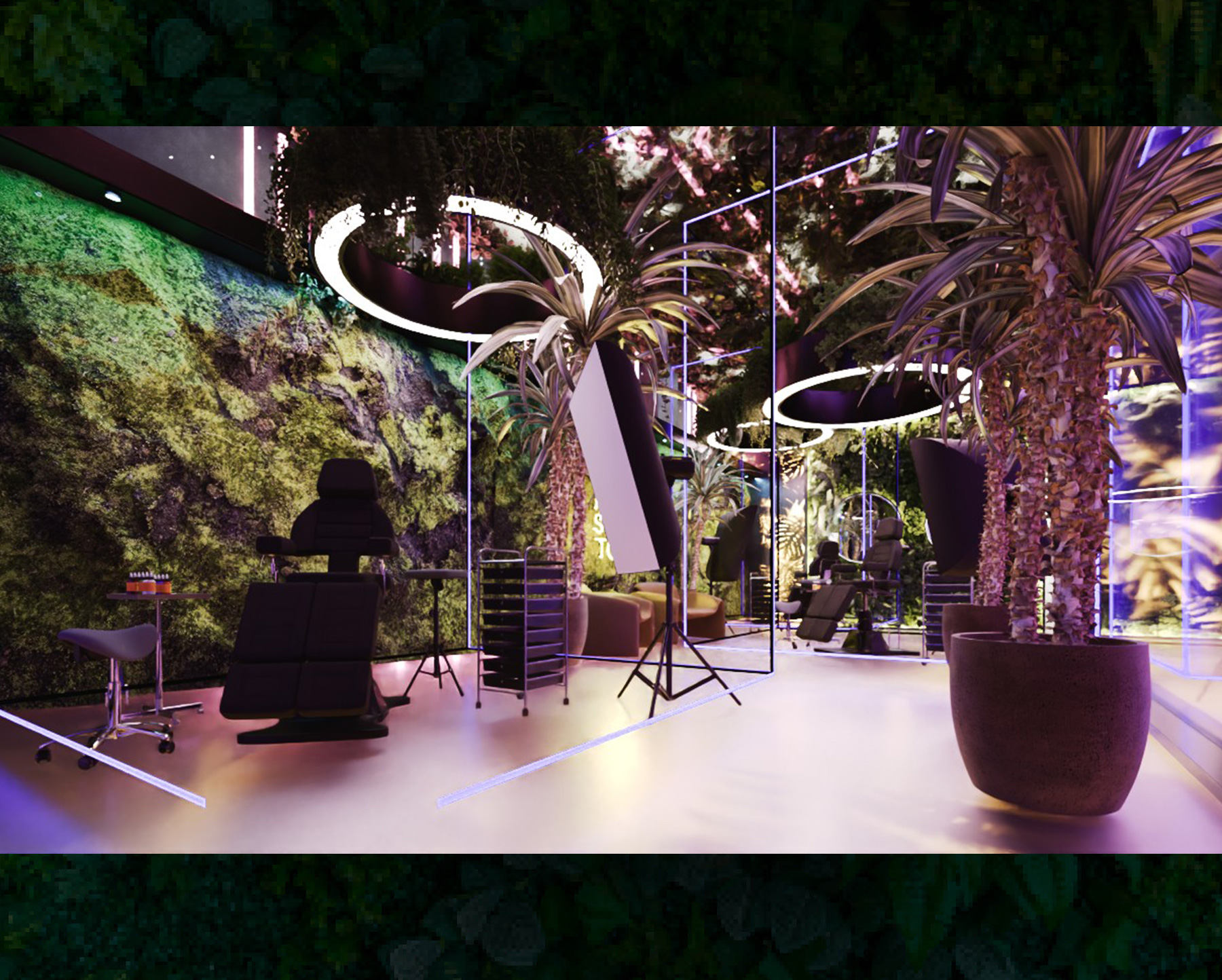 Tomorrowww hat seine Erfahrung im Bereich Branding auf die Inneneinrichtung von Zenote übertragen. Die Studioräume, einschließlich der Tattoo-Stationen, wurden so konzipiert, dass sie mehr als nur funktionale Bereiche sind; sie sind eindringliche Erfahrungen. Elemente wie Neonleuchtkästen, natürliche Materialien wie Holz und Stein und sorgfältig ausgewählte Dekorationsstücke harmonieren miteinander, um eine Umgebung zu schaffen, die sowohl einladend als auch inspirierend ist.
